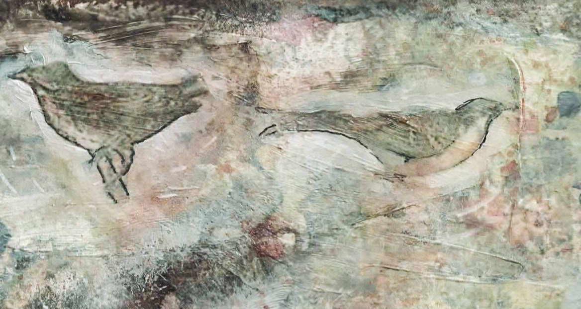 After that, I add birds with tranparent gel medium. Love this part of the paint.