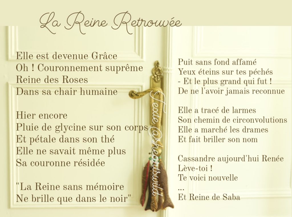 Entre hasards et guidances, les Reines n’ont eu de cesse de se présenter lors de la création de ces ateliers : Perséphone sous son titre de Reine du Royaume Sous terrain, Cléopâtre, la Reine de Sabba, Guenièvre…